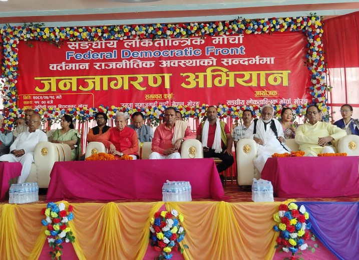 विराटनगर, भदौ १६ ।देशको वर्तमान राजनीतिक अवस्था र संघीय लोकतान्त्रिक संविधानको प्रभावकारितामाथि प्रश्न उठाउँदै लोकतान्त्रिक मोर्चाले विराटनगरमा "जनजागरण अभियान" सुरु गरेको छ। मोर्चामा आवद्ध शीर्ष नेताहरुले संविधान संशोधन, पूर्ण समानुपातिक …