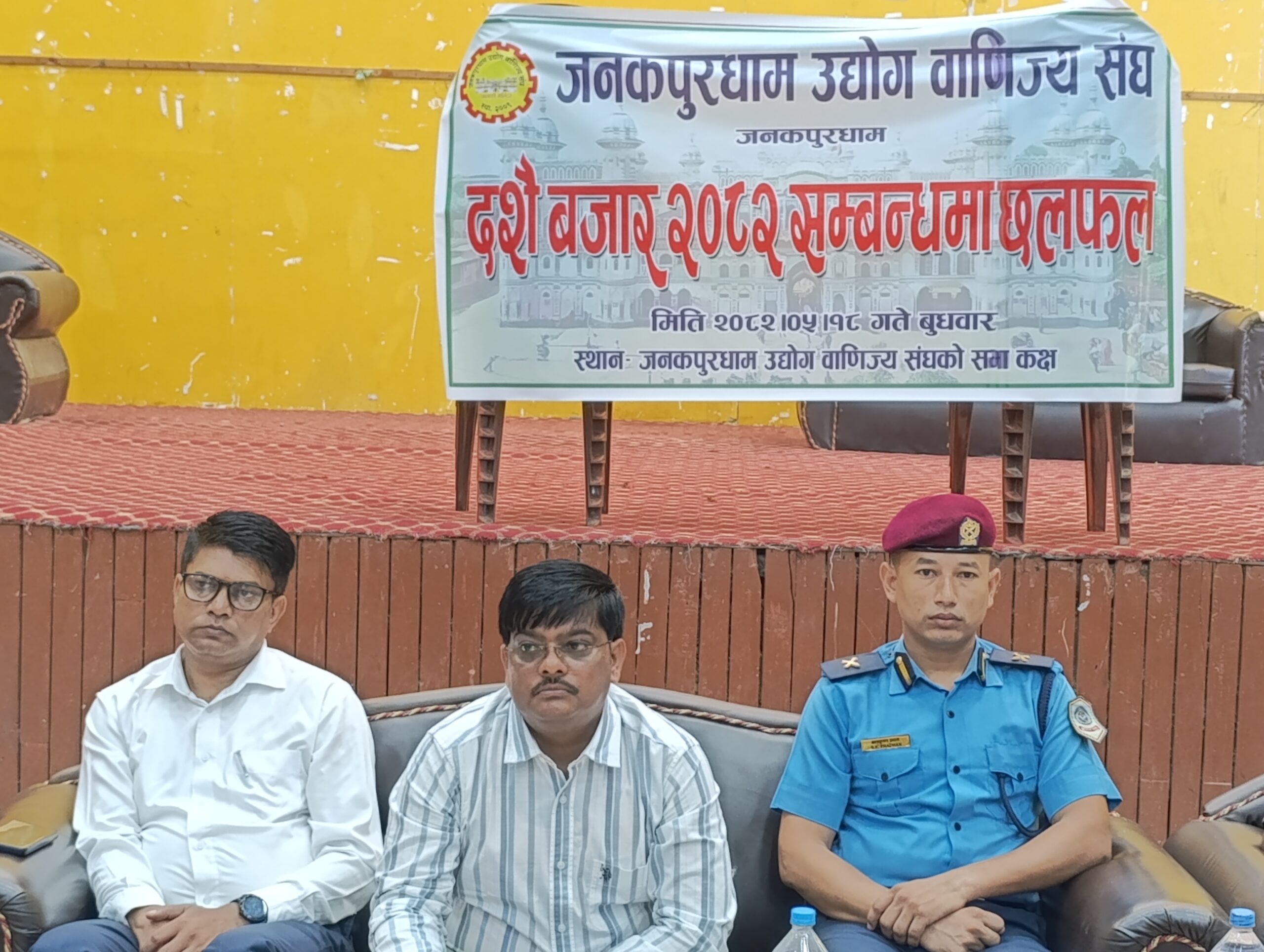 जनकपुरधाम, भदौ १८ गते ।हिन्दूहरूको महान पर्व दशैं नजिकिंदै गर्दा जनकपुरधाममा लाग्ने परम्परागत सुपथ तथा सुलभ दशैं बजार सञ्चालनबारे जनकपुर उद्योग वाणिज्य संघमा सर्वपक्षीय छलफल कार्यक्रम सम्पन्न भएको छ। प्रत्येक …