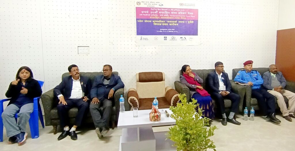 राष्ट्रिय मानव अधिकार आयोग, मधेश प्रदेश कार्यालयद्वारा जनकपुरधाममा मंगलवार आयोजित ‘मधेश प्रदेशमा मानव अधिकार रक्षकहरूको अवस्था र चुनौती’ विषयक संवाद कार्यक्रममा बोल्दै उनले मधेशमा सबैभन्दा बढी महिला हिंसा, विशेषतः घरेलु हिंसा व्यापक रहेको तथ्यांकले देखाएको बताए।