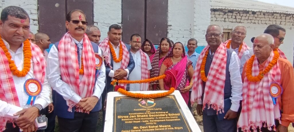 धनुषा जिल्लाको बटेश्वर गाउँपालिका–३ स्थित श्री जनशक्ति माध्यमिक विद्यालयमा भारत सरकारको अनुदान सहयोगमा निर्माण हुने चारतले विद्यालय भवनको शिलान्यास भारतीय महावाणिज्य दूत देवी सहाय मिनाले गरेका छन्।